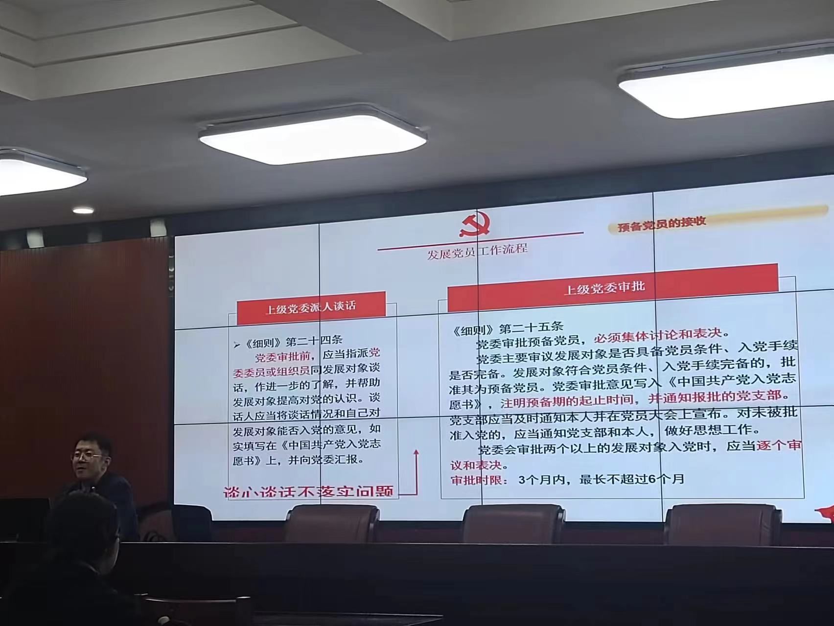 本次党课校党委组织部李子冲老师围绕“发展党员的总体要求与入党条件,入党积极分子“如何争取入党”与“发展党员工作流程”,“以实际行动争取早日入党”这三个方面为大家授课。