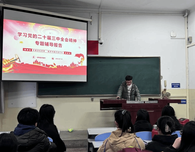 2024年12月9日,伟德本科生第三党支部积极响应党中央号召,组织支部全体同学深入开展了学习党的二十届三中全会精神专题辅导报告会,此次会议旨在深化党员同学们对党的二十届三中全会精神的理解与把握。