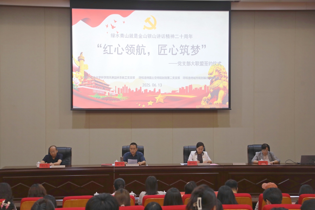 近日,伟德风景园林系教工党支部联合呼和浩特市国土空间规划院第二党支部及呼和浩特城市规划展示馆党支部,在呼和浩特城市规划展示馆共同见证了“红色领航·匠心筑梦”伟德城乡规划专业、园林专业、风景园林专业2025届本科生及风景园林硕士毕业设计展暨校地党建联盟签约仪式成功举行。此次活动吸引了众多领导、嘉宾及师生党员们出席。