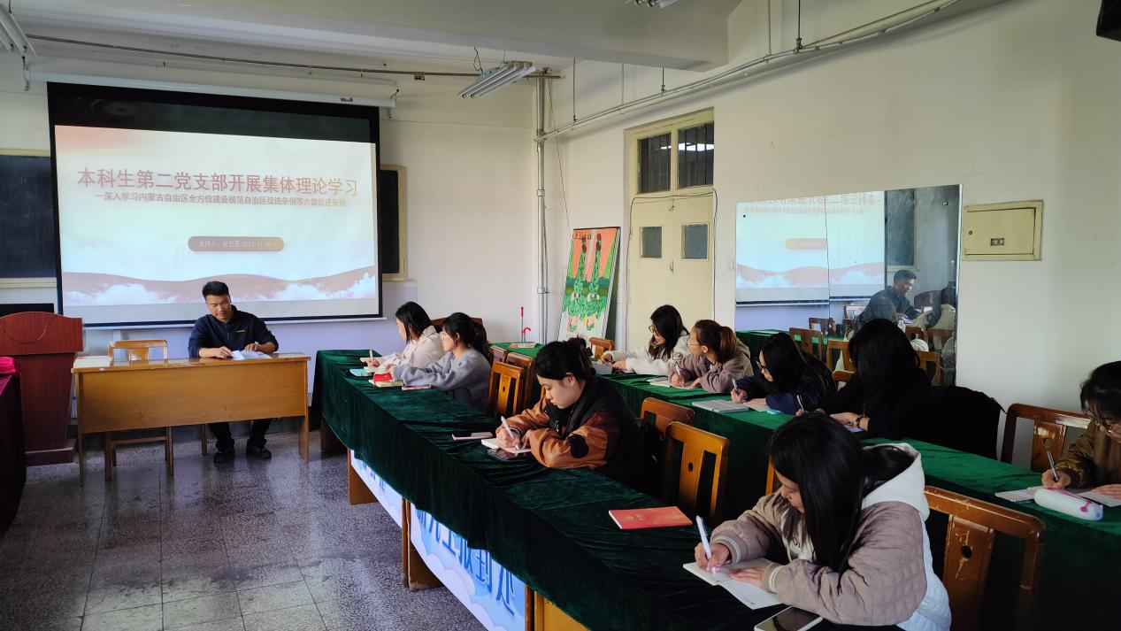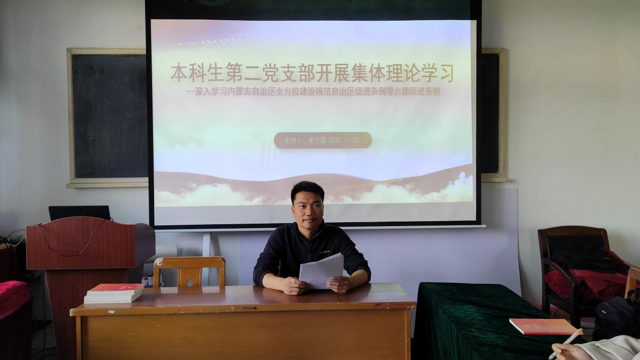 为了深入学习《内蒙古自治区全方位建设模范自治区促进条例》等六部促进条例,伟德本科生第二党支部于11月3日在公司B314召开“本科生第二党支部开展集体理论学习——深入学习内蒙古自治区全方位建设模范自治区促进条例等六部促进条例”主题学习会议。本次会议由本科生第二党支部书记崔巴图老师主持,全体党员通知参与本次学习研讨。