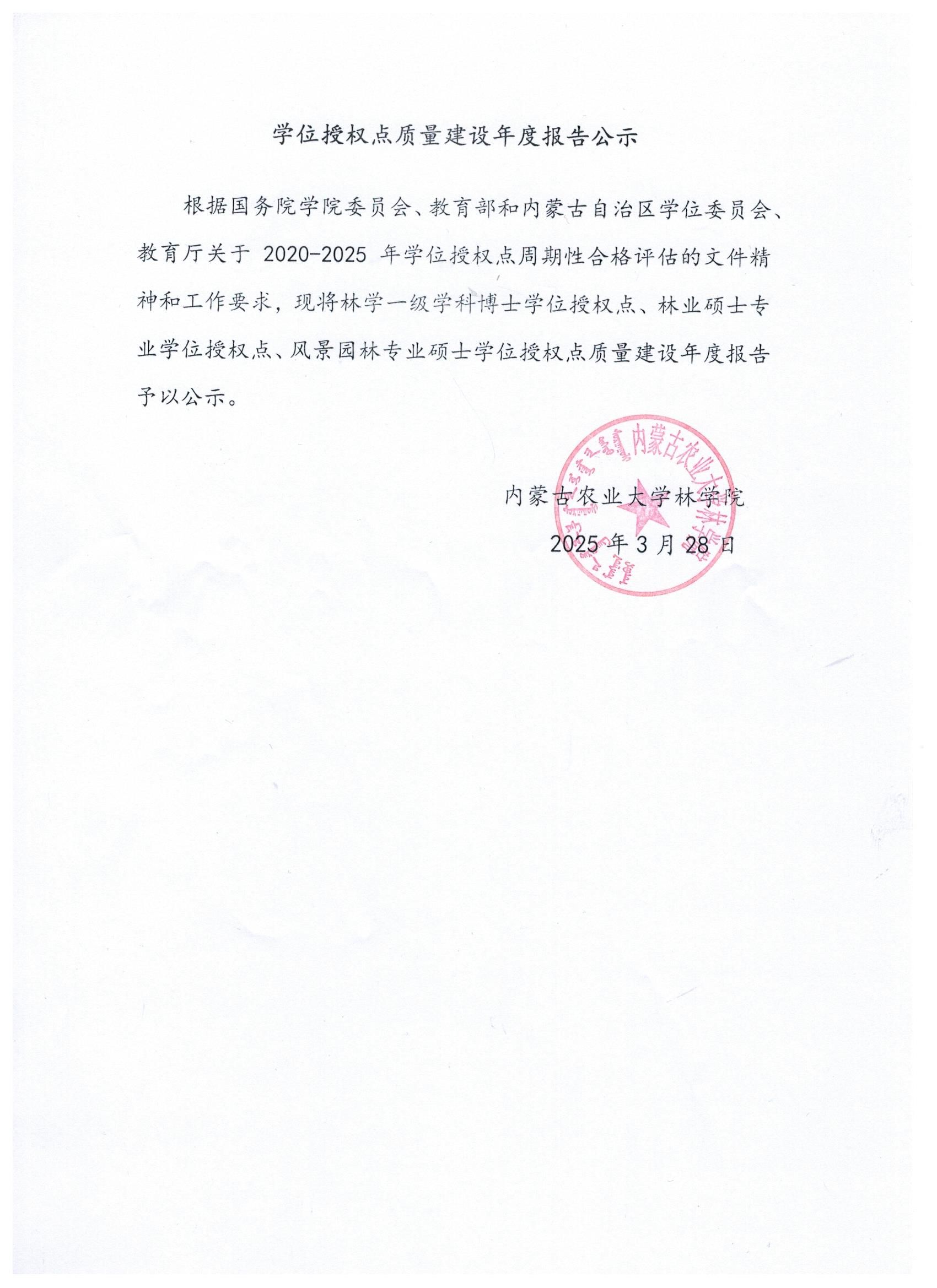 学位授权点质量建设年度报告公示