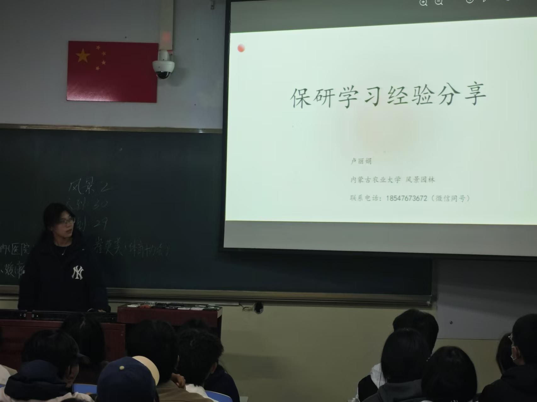 为了帮助同学们更好的规划自己的学业发展,2024年10月27日,24级风景园林专业的同学们邀请保研至中国农业大学的21级风景园林2班卢丽娟学姐在东主楼开展免试攻读研究生宣讲活动。