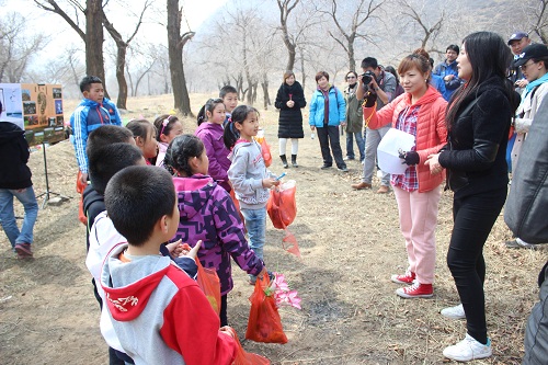 首先,在到达小井沟时,同学们带领小员工一起开始捡拾垃圾,还大山一片洁净,同学们和家长一起爬山,一边捡垃圾一边领略大自然的风光,体验大自然的美丽。捡完垃圾下山过程中,同学们运用自己所学的知识带领大家认识大青山的一草一木,让大家了解每一种树木的特点,了解它们对大自然,对环境的重要性,以增强大家的环保意识,来更好的保护大青山,保护自己的家园。孩子们也非常认真的记下了哥哥、姐姐说的所有的环保小知识。下山后在休息的同时,组织父母和孩子一起进行夹气球、绑腿竞走等小活动。