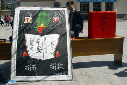 “4.20”四川雅安7.0级强烈地震让全国人民的目光再次凝聚到了饱经灾害的四川省。作为当代老员工,有责任、有义务为灾区奉献自己的爱心。在活动现场,老师和同学们积极献出自己的爱心,无论是书籍还是捐款,都表达了大家心系四川雅安,奉献爱心的心情。活动收到的所有募捐物品将通过有关部门送往四川雅安受灾地区。