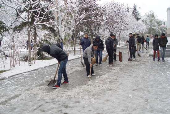 11月10日上午10:00,公司分团委组织青年志愿者在校园进行了铲雪义务劳动。