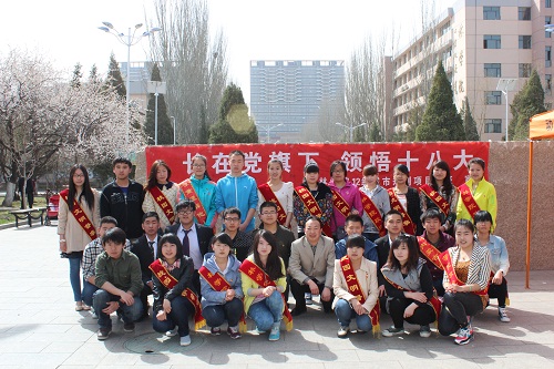 活动中,班长总体协调,执行组,后勤组,宣传组等各小组各司其职,逐项落实活动内容。员工代表宣读了感悟十八大精神宣传单,同学们身披红色宣传授带向现场人群发放了感悟十八大精神宣传单,向同学们发放了共青团团徽,为学习成绩优秀的同学佩戴了团徽,广大师生在印有“长在党旗下,感悟十八大”的条幅上签名留念。