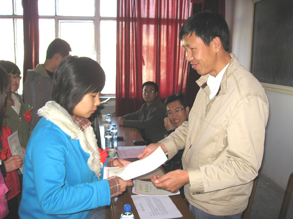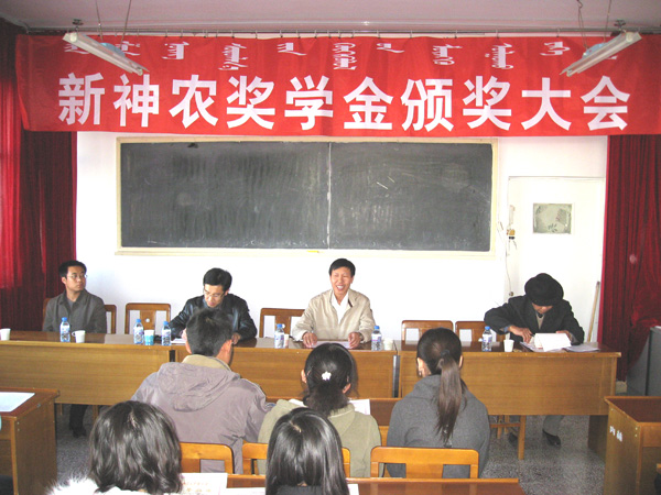 在全院师生欢庆公司成立50周年之际,员工卢占山也返回母校,为获得2008年度新神农奖学金的同学颁发了奖学金。