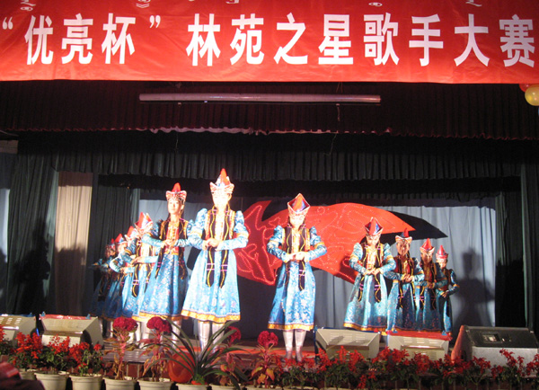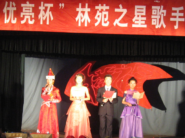 经过初赛、复赛精彩而激烈的角逐,有8名选手登上了“林苑之星”决赛这个梦想的舞台。此次大赛以丰富多彩的文艺表演呈现给观众。在一支充满活力的动感街舞中晚会拉开了序幕。高亢的节奏,震撼的音律将现场的气氛推到高峰。选手们精神焕发,参赛的曲目也不拘一格,有充满时代气息的流行歌曲,也有充满民族气息的蒙古族歌曲,都赢来了台下观众一阵又一阵的掌声。前三届的林苑之星得主沙其仁贵,田丽丽,呼达古拉也带来精彩的节目为晚会助兴添彩。除了动听的歌曲以外还有06级的曹宇和07级的董旋带来的相声表演,更是给现场添了无数欢乐的气氛。还有蒙古舞也博得观众的阵阵掌声。麦丽苏凭借一曲《这片草原》获得了第四届“林苑之星”的桂冠。