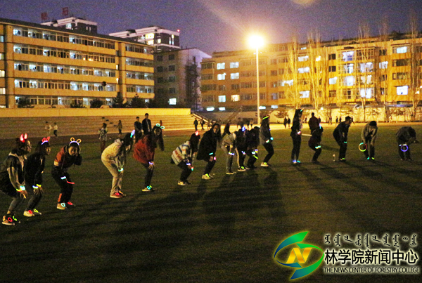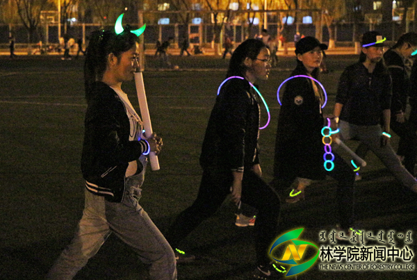 4月15日晚7:30,公司于操场举行荧光夜跑活动,2015级园林双语1班和2015级园林汉语1班全体同学参加本次活动。