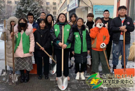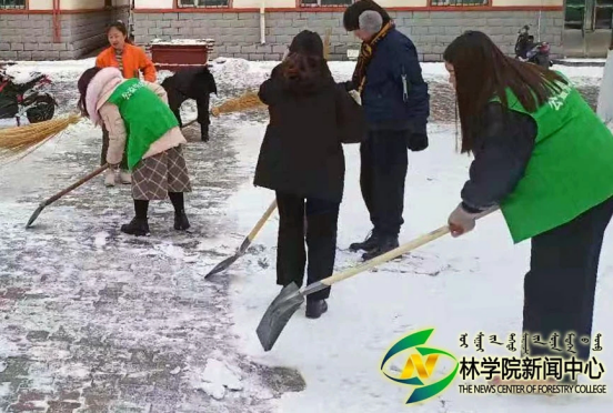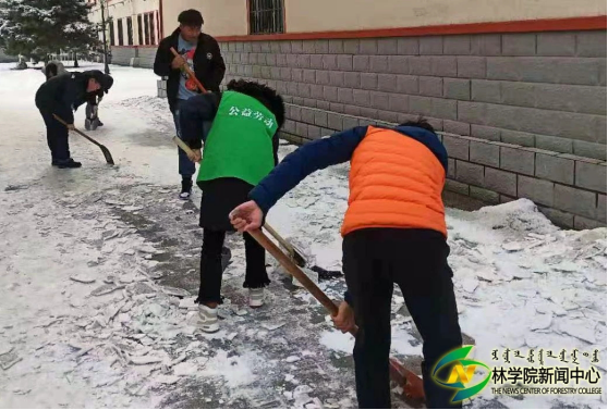 志愿服务小组全体成员在伟德楼前集合,活动负责人分配劳动任务并配发劳动工具。同学们以小组为单位合理分工,在团队成员的共同努力下,劳动效率大大提升。在清扫过程中,各小组成员间配合默契,将宿舍楼前的积雪清扫干净,保障了同学们的安全通行。