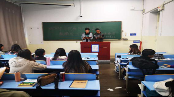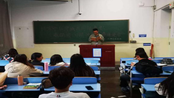 活动伊始,团支书向同学们介绍了此次团日活动的流程,同学们畅所欲言,都阐述了自己想法。随后,团支书向同学们解释了爱国主 义和爱国主义精神的意义等一系列内容,其间还有设置提问关于爱国主义教育的含义、内容和历史发展的问题,同学们都积极举手回答,勇于发表自己的观点看法。此外,团支书组织在每个宿舍中挑选了一到两位同学上台演讲。