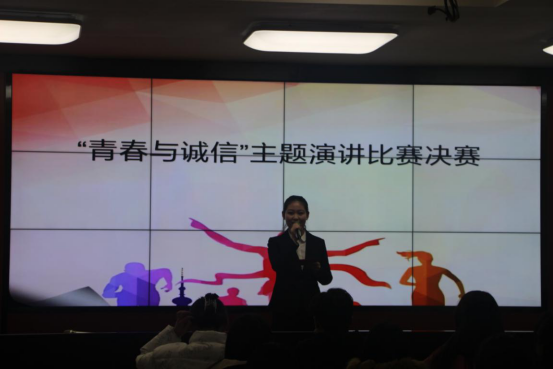 比赛伊始,主持人向同学们介绍了本次活动的评委、比赛规则、评分标准及设奖情况。接着,选手依次上台演讲,在演讲的过程中,同学们表达了青春的宝贵和诚信的重要性,其中部分同学结合自己的亲身经历及通过调查他人的事情来说明青春与诚信之间密不可分的关系。通过选手们声情并茂的演讲,赢得台下同学们热烈的掌声。根据选手们的精彩表现,最终排名结果如下: