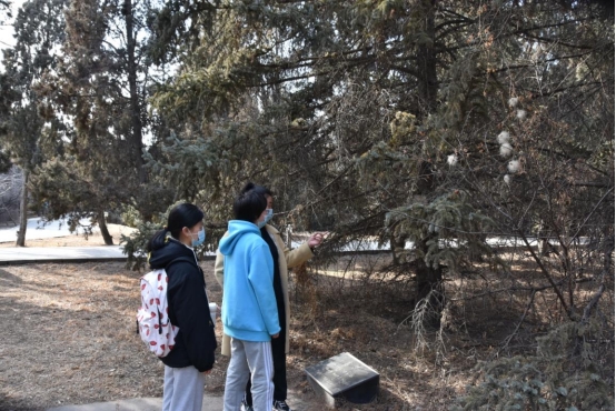 在园内,同学们仔细观察了树木园的布局。部分同学认真的记录着不同的树种并拍下了它们的形态特征,并根据相关的提示牌,辨认着树干和未掉落的树叶,认识了很多的种类的树木。