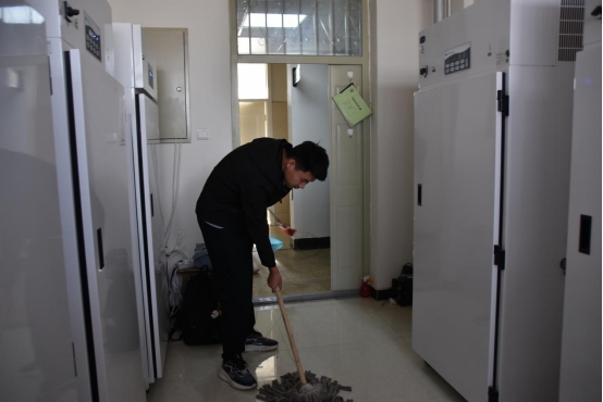 活动伊始,班长刘家宝组织同学们前往伟德四楼,郝老师安排同学们对林木培养气候室、林木培养室和森林培育教研室分别进行打扫。在明确工作任务后,同学们自行分成四个小组。在打扫过程中,同学们迅速收集清扫工具,彼此团结合作,相互配合。大家小心地将实验仪器搬开,清扫地面上的灰尘,再将仪器归位。同学们对工作认真严谨的态度正是对雷锋精神最好的诠释。同学们认真地清扫实验室的每一个角落,在大家的共同努力下迅速完成了清扫活动。打扫后的教室焕然一新,一尘不染。本次志愿活动至此圆满结束。