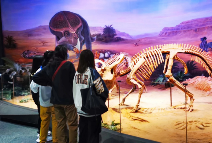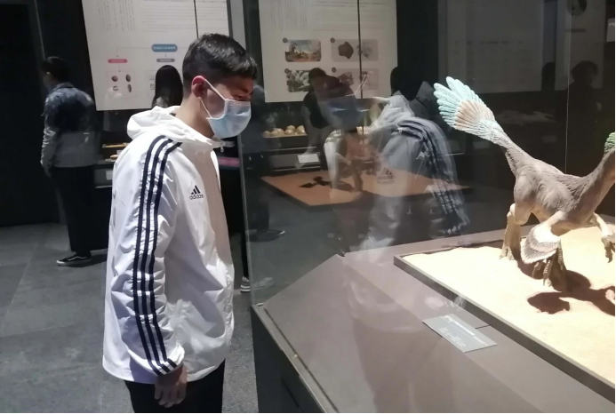 活动伊始,由团支书闫奕霖带领同学们在内蒙古博物院门口集合,而后同学们有序排队进入展厅区域。同学们依次参观了承载有千万年或上亿年历史的远古化石展区,见识到了各式各样恐龙、剑齿虎、猛犸象等已经灭绝的远古生物,了解了人类的进化过程,明白了在漫长的历史长河里,我们人类的存在也只是犹如蜻蜓点水一般,但是确在地球上留下了数不清的痕迹。