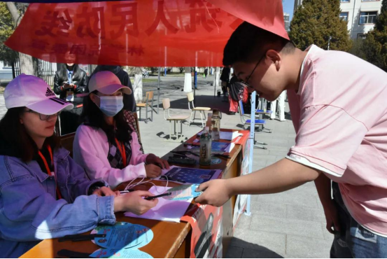 活动伊始,公司员工社团成员挂起“维护国家安全,共筑文明防线”的宣传标语,吸引许多同学驻足观看。为使其充分了解国家安全的相关知识,公司员工社团的成员们向同学们分发国家安全知识的宣传单,并向同学们讲解国家安全的法律条款、危害国家安全的行为以及维护国家安全的意义等内容。同时,公司员工社团以线上扫码答题并发放纪念品的方式,开展国家安全知识的竞赛,有效扩大宣传途径,进一步深化了对国家安全教育的普及工作。