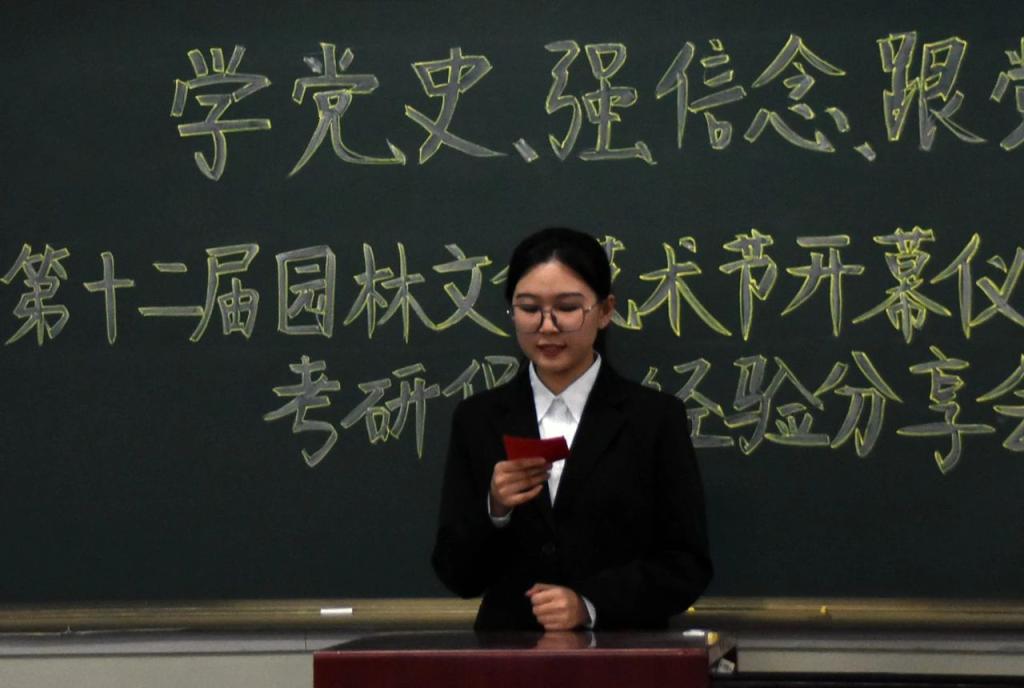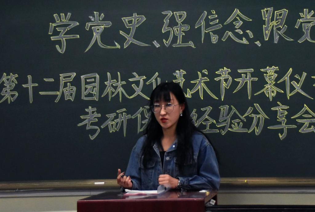 会议伊始,由风景园林专业硕士王晓婷开始介绍自己的学习经验,她重点强调了耐心、信心的力量;紧接着,消防工程专业研究生林阳介绍了自己考取公务员从而考取研究生的经验;城乡规划专业李媛则重点强调了考研时的刷题技巧;风景园林专业张燕飞、森林保护专业冯茹、林学专业吴亚男、胡思乐也分别上台讲解了自己关于考研的学习经验。讲座中,同学们更加准确有效地确定了自己的就业方向,给予自己明确的定位,至此,本次讲座顺利结束。