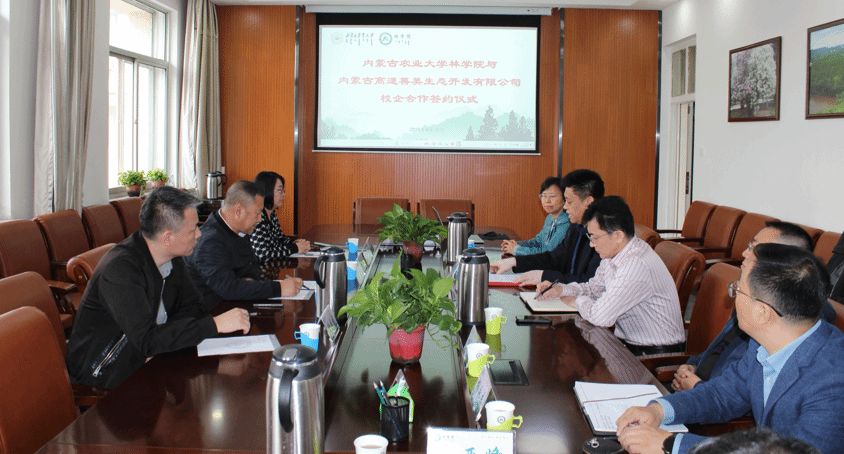 座谈中,岳永杰介绍了公司的团队建设、教学和科研成果和校企合作等基本情况。阿儒汗介绍了内蒙古高速善美生态开发有限责任公司的概况。双方深入交流后,签订校企战略合作框架协议。