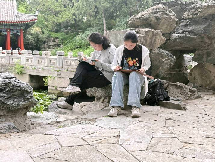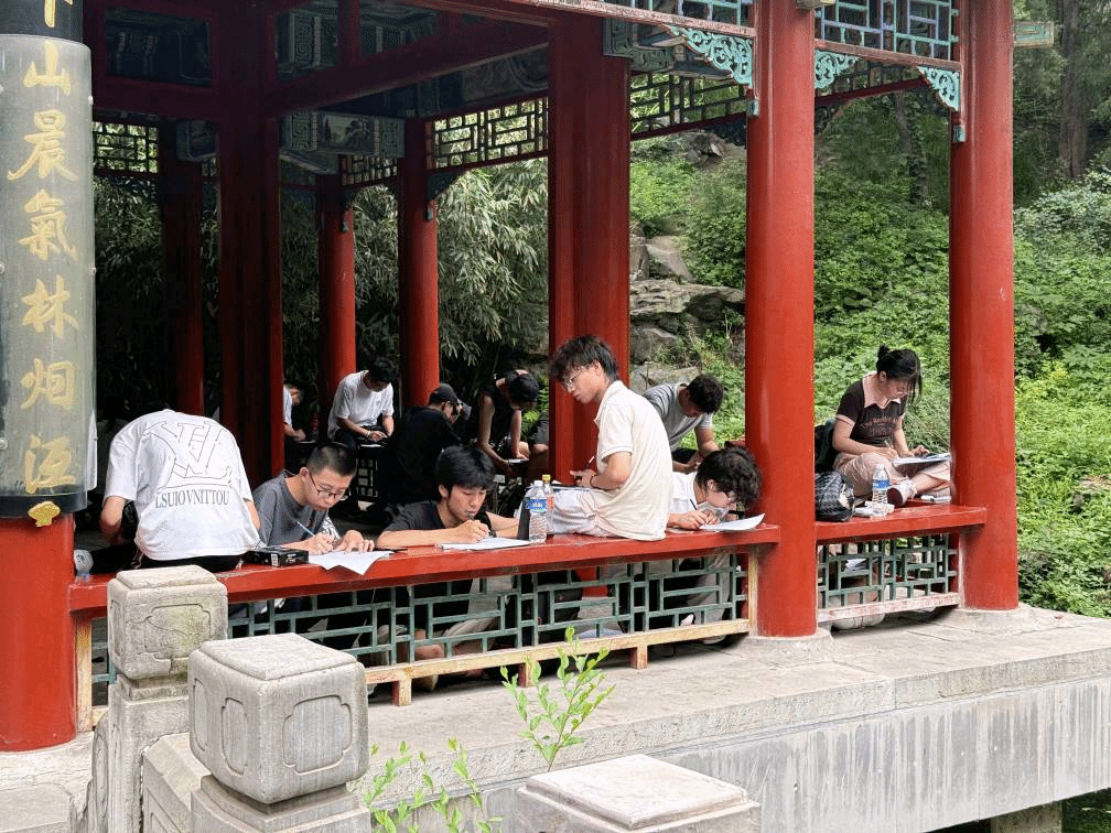 次日赴颐和园,这座集传统造园艺术之大成的皇家园林,以“虽由人作,宛自天开” 的造园准则震撼员工。漫步其间,古建与自然山水交融,长廊彩绘、十七孔桥等景观展现工匠精湛技艺;佛香阁、谐趣园等古迹更深化员工对古典园林的理解。在谐趣园,同学们在老师的带领下完成草测和个人的园林景观手绘作业。