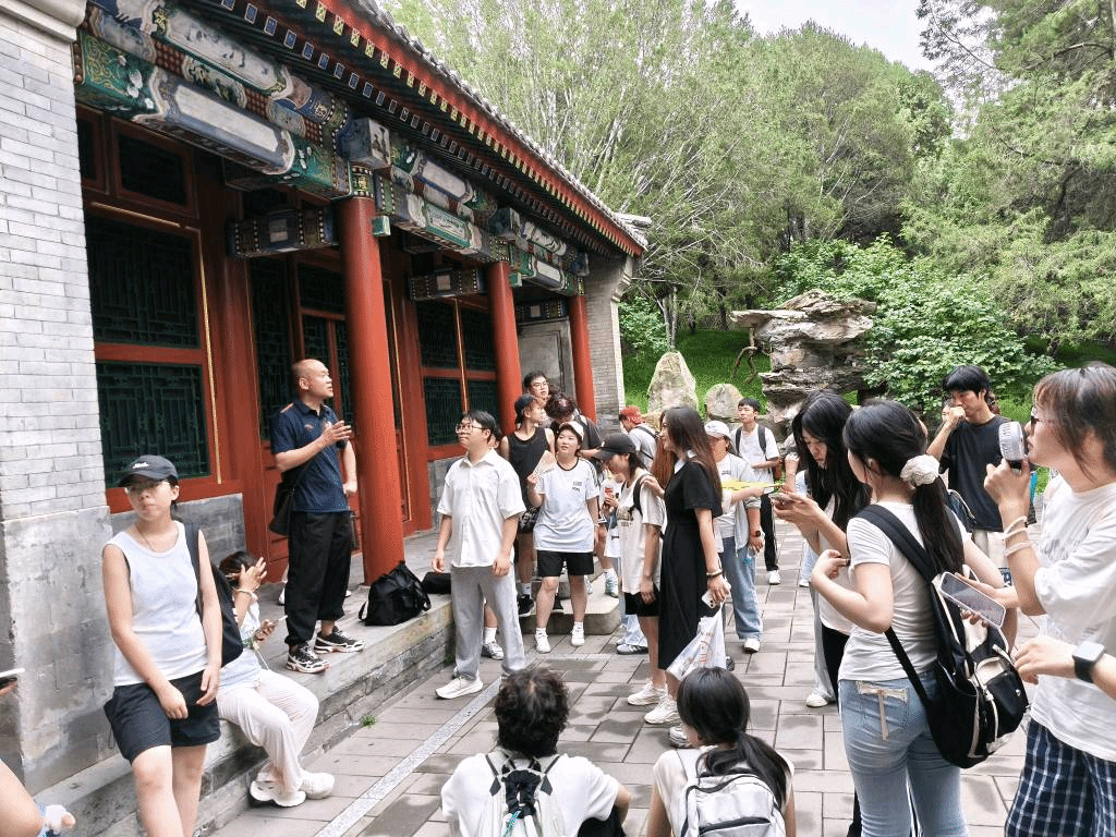 第三日探访奥林匹克森林公园,同学们体验现代园林与生态理念的结合,其中南园侧重自然山水休闲、北园主员工态保护。员工观察丰富植物群落与生态系统,学习城市生态调节功能,实地研究铺装纹理、植物配置及小品设计,并针对“林泉高致”庭院精准测绘。