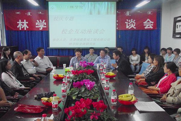 座谈会上,祈永介绍了公司的发展现状,卢云慧展望了公司的发展前景与未来规划,希望公司员工到天津绿茵景观工程有限公司实习,欢迎公司毕业生到公司就业和发展。同学们与公司负责人进行了互动交流,提出了关于工作流程、工作待遇等方面的问题,卢云慧董事长逐一给予解答,并就如何将所学专业知识运用于实践提出了很好的意见和建议。